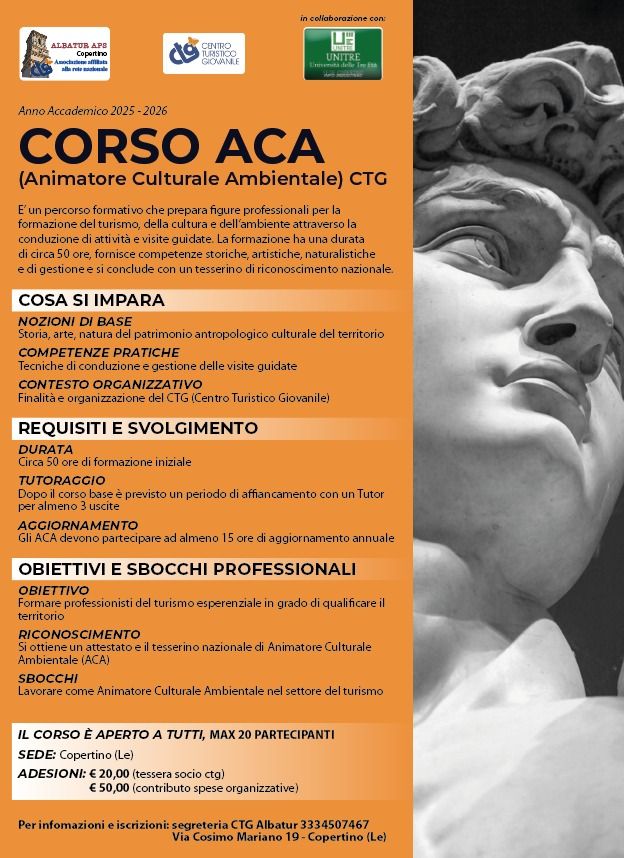 L'animazione culturale e ambientale non è solo un lavoro o un hobby: è una missione. In un'epoca in cui il turismo di massa rischia di soffocare le peculiarità dei territori, la figura dell'Animatore Culturale Ambientale (ACA) promossa dal CTG (Centro Turistico Giovanile) - ALBATUR di Copertino, emerge come un pilastro fondamentale per la...